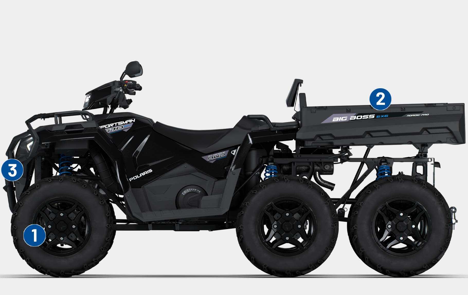 La nouvelle génération de Sportsman 6X6 570 est dotée d’un nouveau design audacieux, d’un châssis renforcé et de capacités 6x6 améliorées pour une conduite plus fluide et un confort supérieur.
