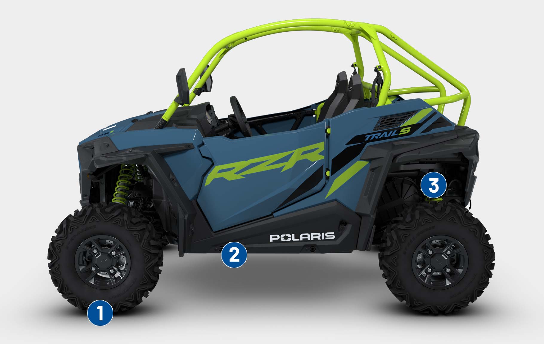 Le RZR Trail S délivre l'équilibre parfait entre performances, agilité et confort grace à une largeur de voie de 152,4 cm.