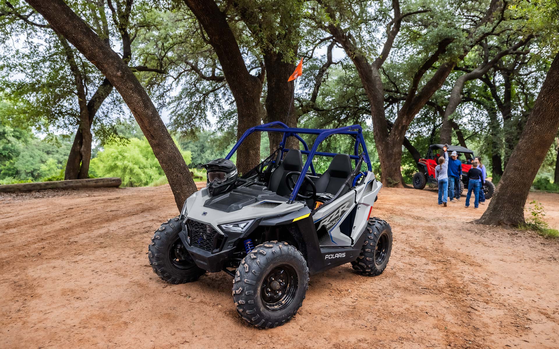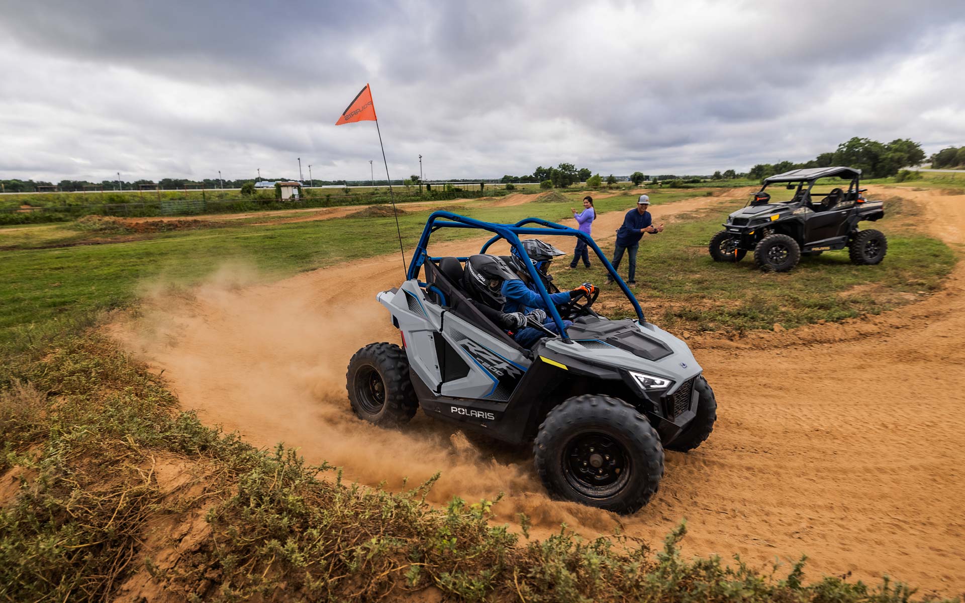 Le RZR 200 accompagne vos enfants de 10 à 16 ans tout au long de leur progression grâce au moteur EFI de 180 cm3, au siège et volant réglables, le siège passager et les accessoires en option.
